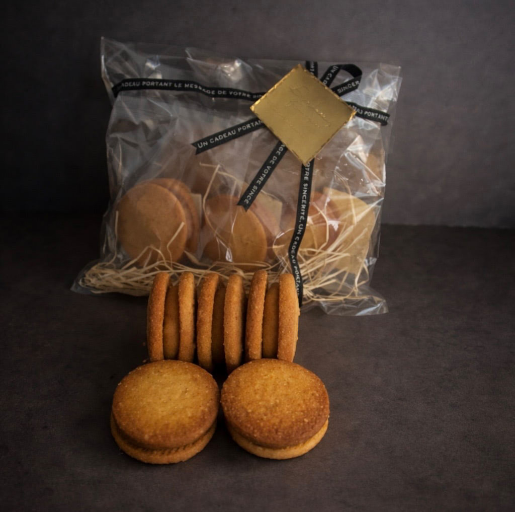 香ばしく焼き上げたピーナッツサブレにとろりと濃厚なキャラメルショコラを挟んだ贅沢なサンドクッキーです。
